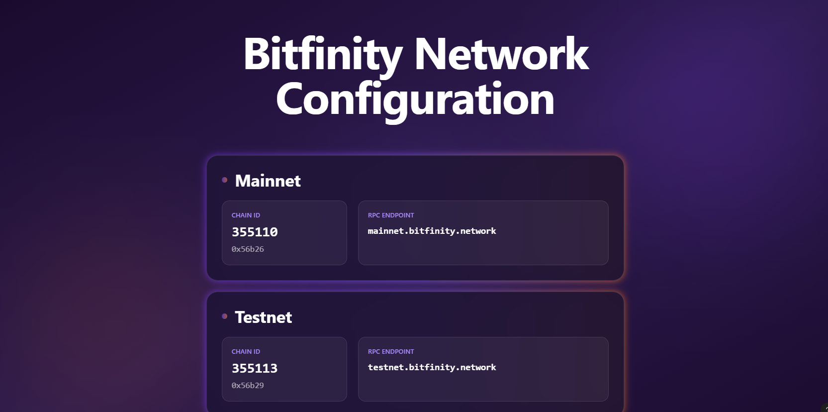 Want to deploy on Bitfinity? Here are the configuration specifications: