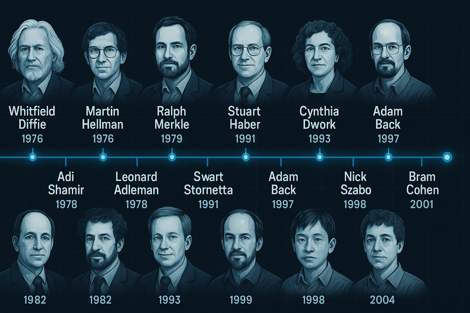 Bitcoin didn't appear out of thin air in 2008. Discover the 11 groundbreaking inventions spanning 50 years that laid the foundation for Satoshi's masterpiece.