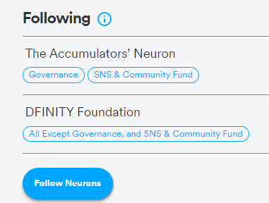 · Following a Known Neuron – If you follow a known neuron, you don’t have to vote on every proposal to earn your rewards. When the neuron you are following votes, your neuron will follow it (vote the same way) and will receive the designated rewards.