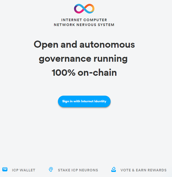 · NNS – NNS stands for Network Nervous System. This is the dApp that operates on-chain network governance for the IC. It serves as a wallet that can hold and send ICP. It also allows you to stake your ICP in a neuron. Finally, it allows stakers to vote on network governance proposals and earn rewards.