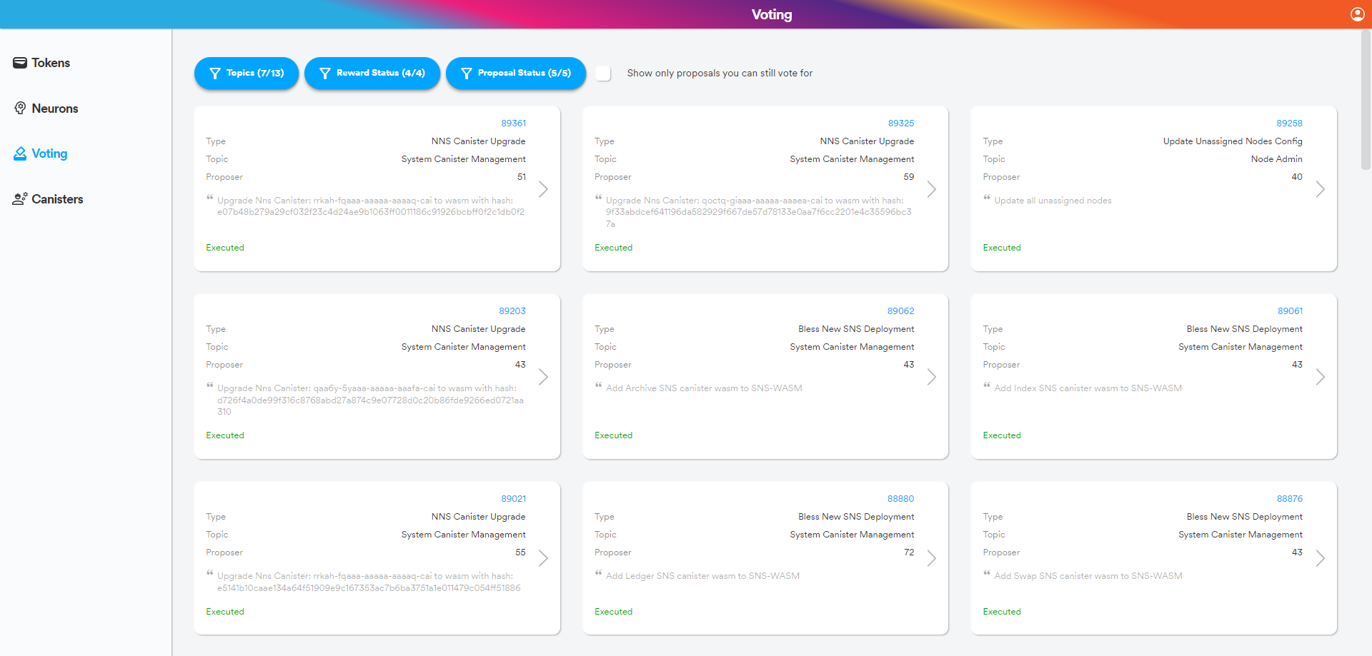Governance proposals are weighted more heavily and are necessary if you want to receive any significant amount of rewards. Setting a known neuron to follow will ensure that you vote and get your rewards, even if you don’t log in for a few days. It will also allow you to follow a trusted neuron when you are unsure how to vote on a specific topic or don’t understand the proposal. This makes it essential to understand the known neuron you follow so that your opinions are accurately represented. Once the known neuron that you follow votes, there is no way to change your vote.