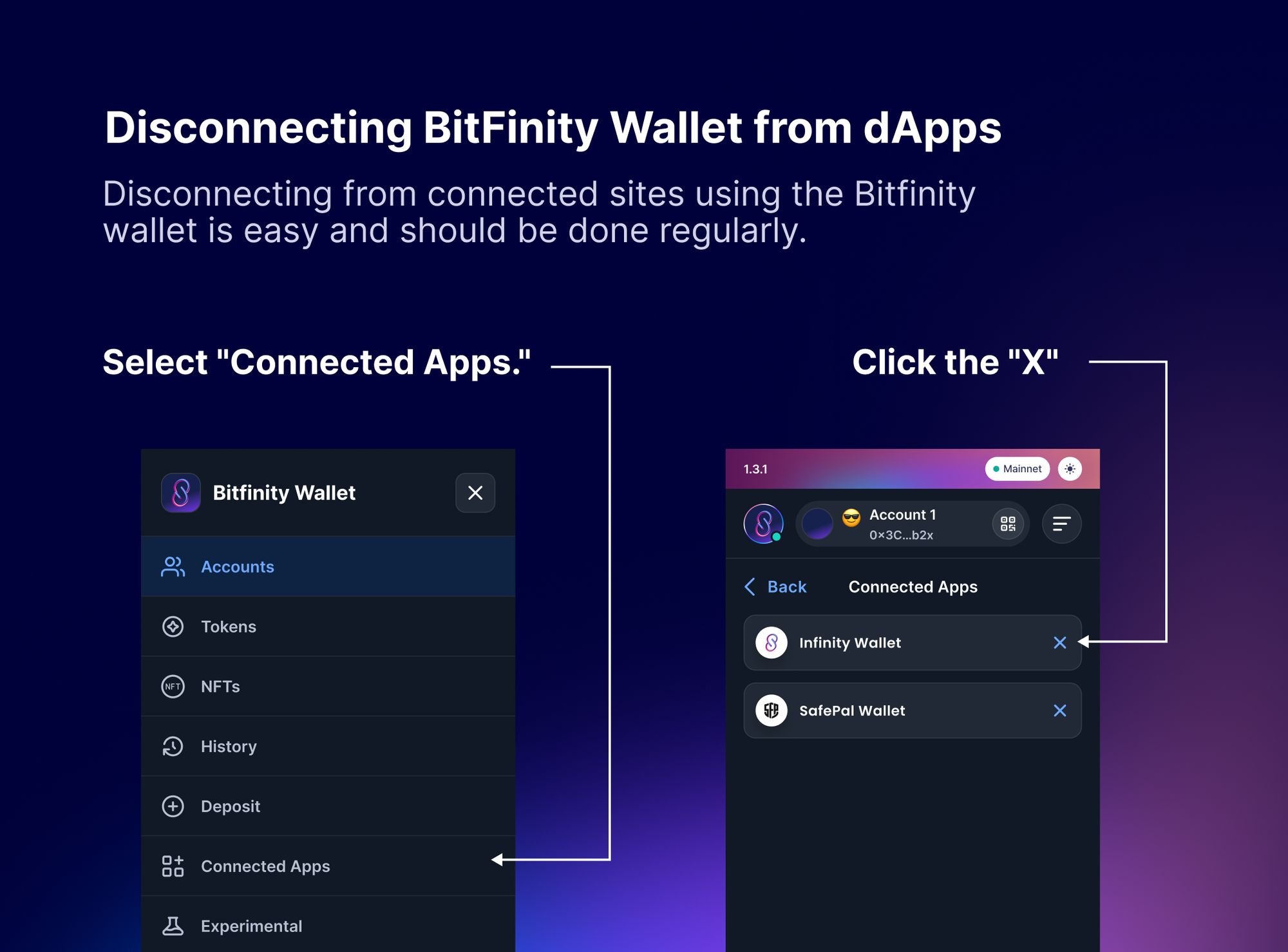 Looking to Disconnect your Wallet from a dApp? Here's how with the Bitfinity Wallet Extension