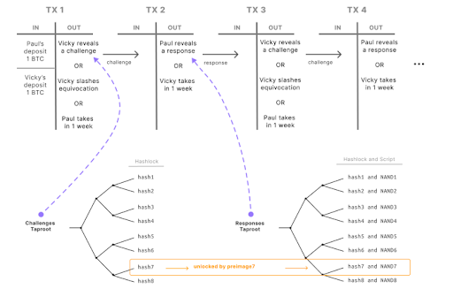Additionally, Bitlayer aims to use BitVM’s fraud-proof protocol for state transition verification and combines the DLC (Discreet Log Contracts) - a contract execution framework based on an oracle with BitVM (to act as the oracle) - to facilitate a secure asset bridge.